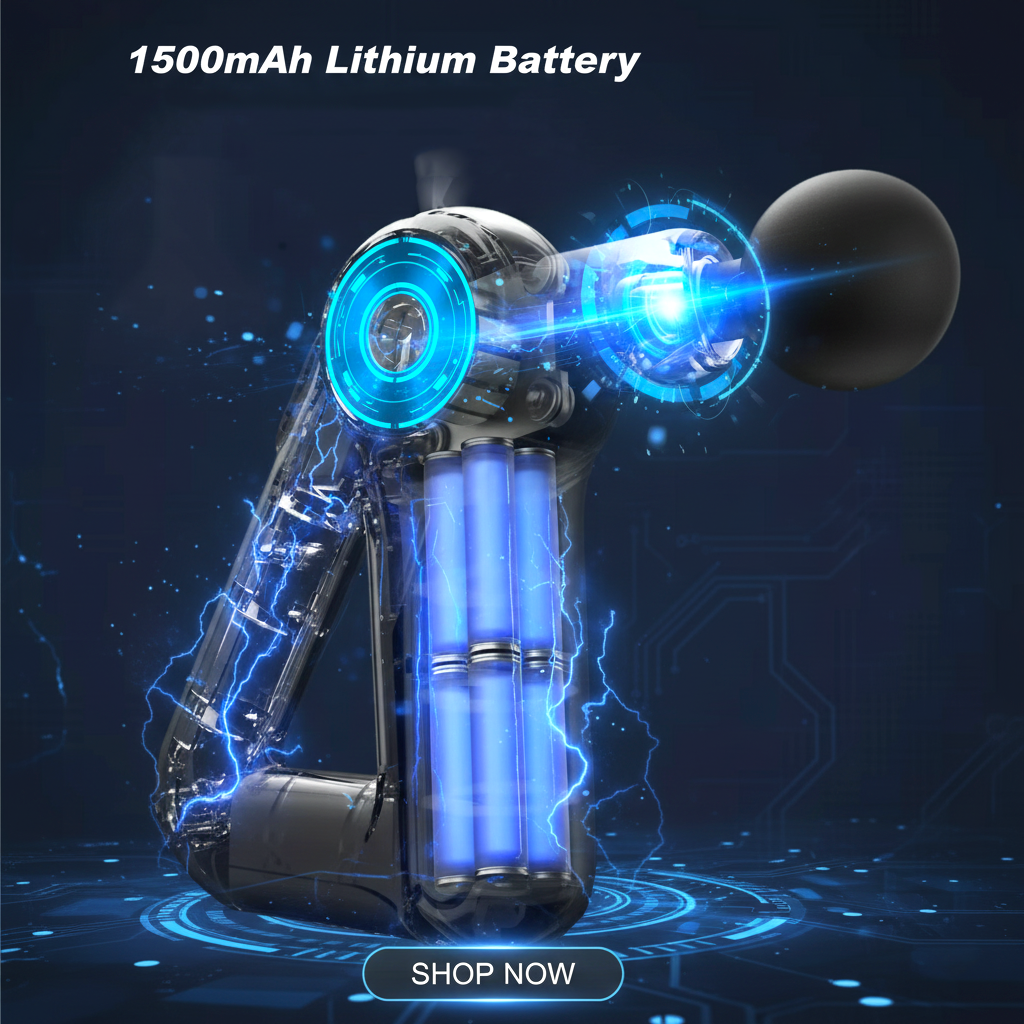 La batteria da 1500 mAh assicura sessioni di massaggio affidabili e senza interruzioni, con la massima libertà di movimento.